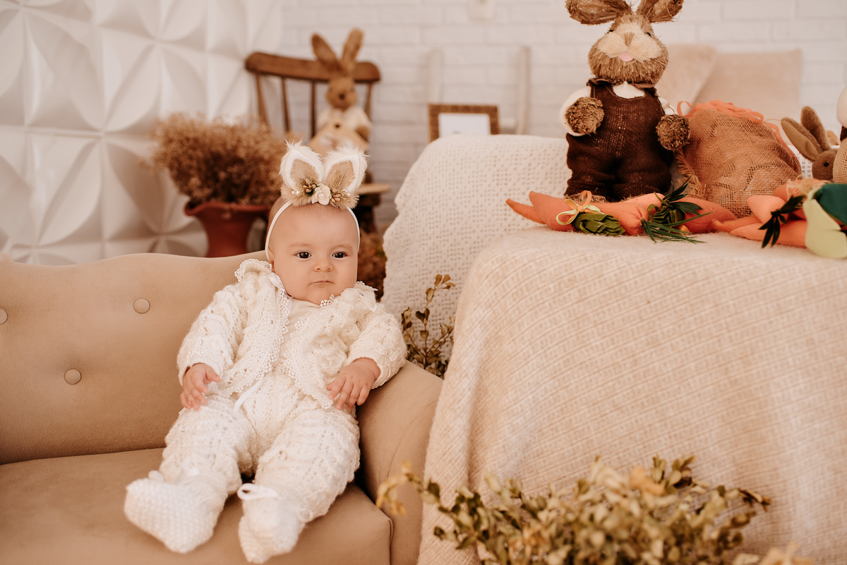 Isadora tem só 5 meisinhos, mas já carrega uma personalidade marcante e muito encantadora. Na nossa sessão especial de Páscoa, entre olhares, expressões com muitas caras e bocas e alguns beeem sutis sorrisos hahahah, a nossa bebê trouxe muito charme!